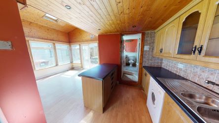 In its current configuration, accommodation consists of hallway three bedrooms, kitchen/living room, together with a bathroom.